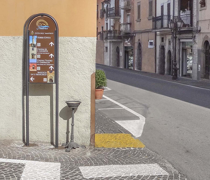 Il progetto obiettivicomuni.it ad Amatrice, oltre alla mappatura dei siti in virtual tour, fotografie in HDR a 360°, doterà il territorio cittadino della nuova segnaletica turistica integrata con il QRCode e di una serie di pannelli e frecce direzionali che aiuteranno i turisti a raggiungere e conoscere le bellezze di Amatrice.